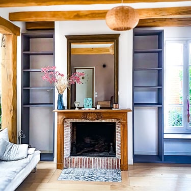 “Shelfi a conçu une magnifique bibliothèque en Valchromat huilé gris, à la fois élégante et chaleureuse. Elle accueille nos livres et le bois pour la cheminée, créant un coin cosy autour du feu. Finitions impeccables !”